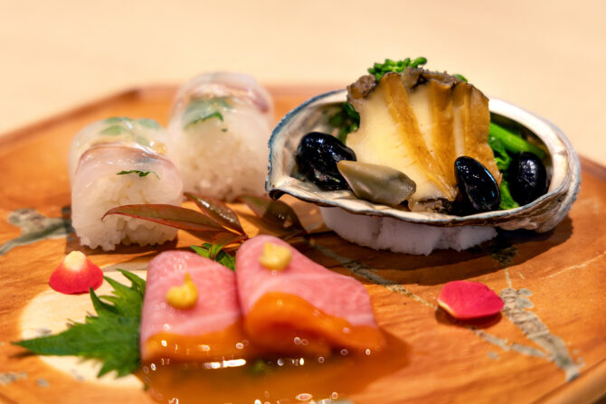This thoughtfully curated 5-course menu takes Mom on a culinary journey through Japan’s finest flavors. It starts with a tantalizing array of seafood in the Hassun Moriawase appetizer. Think seabream roll sushi, seared tuna with egg yolk shoyu, and simmered baby abalone – a delightful way to awaken the palate.