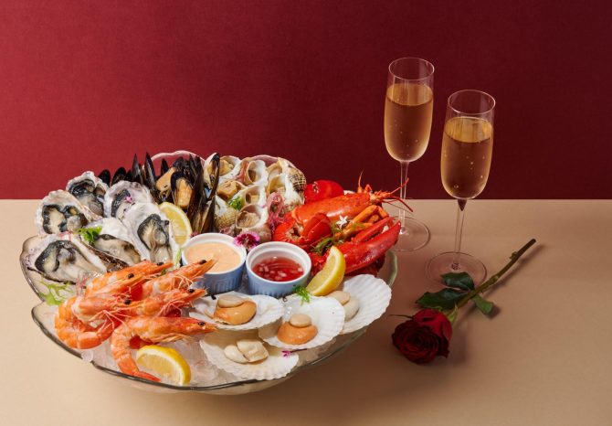 Set within the sophisticated ambience of The Lobby Lounge, accompanied by a complimentary rose, indulge in the delightful fusion of oceanic extravagance offered by the Love’s Bounty from the Deep Seafood Platter (S$168++).