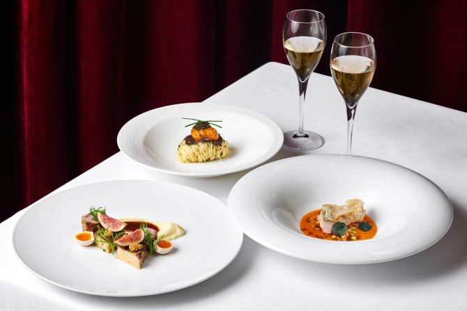 Delight your palate with meticulously crafted dishes, beginning with the Oyster Mornay amuse-bouche, followed by starters including Chilled Pasta, Hokkaido Scallop, and Japanese Amadai. For the main course, choose between the Australian Wagyu Striploin or Quail Roulade, and conclude this delightful meal on a sweet note with the luscious Chocolate Hazelnut Gâteaux.