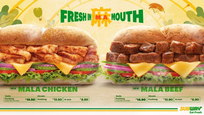 Subway Singapore is heating things up in Singapore with their all-new Mala Chicken and Beef sub from now to 28 March 2023. The new subs are paired with the newly launched Chocolate Chip Cookie Siew Dai – a less sugar remake of Subway’s signature chocolate chip cookie.