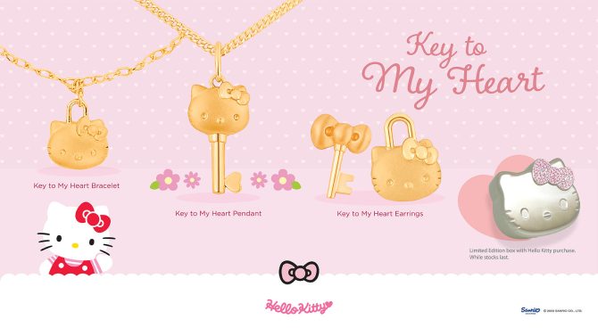 This Hello Kitty ‘Key to My Heart’ collection is now available exclusively in Poh Heng retail boutiques island-wide.