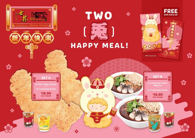 Set A consists 2 XXL Crispy Chicken and 2 Freshmade Drinks, while Set B comes with 2 Handmade Oyster Mee Sua and 2 Freshmade Drinks. Both sets are priced at S$16.80 each, available only in stores.