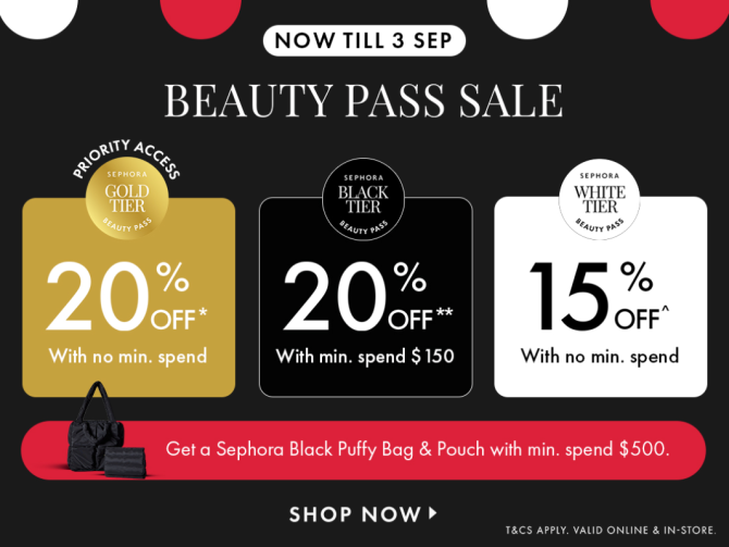 Sephora is back with its last Beauty Pass Sale of the year! Enjoy up to 20% off your favourite beauty brands such as GHD, GUCCI Beauty, Givenchy and more with no min. spend.