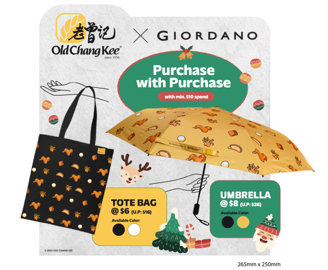 Old Chang Kee presents a delectable treat for foodies with the exclusive Old Chang Kee x Giordano collaboration collection! This unique collaboration brings a taste of Singapore from food to fabric, featuring Old Chang Kee’s iconic offerings on Giordano fashion items such as unisex t-shirts, tote bags, umbrellas, and caps. Fans can proudly display their affection for Curry’Os, Chicken Wings, Sotong Heads, Crab Nuggets, Spring’Os, Fishballs, Black Sesame Balls, Green Bean Feel’ins, and more through this exclusive collection!