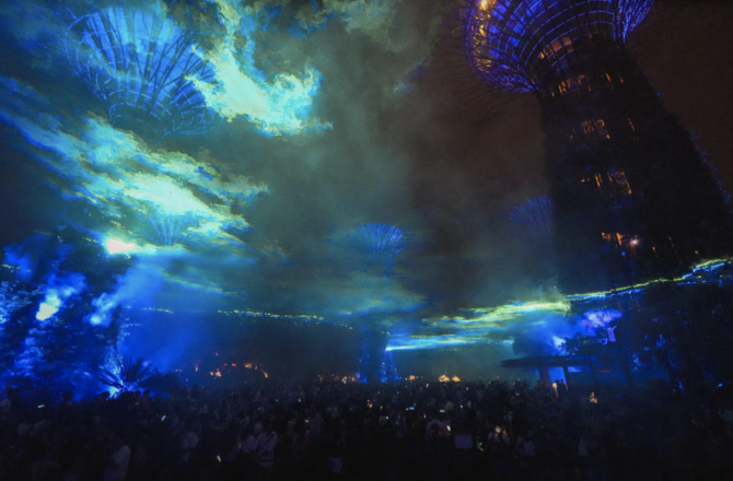 Light up your evenings at Gardens by the Bay with a special nighttime light and sound experience called “More Night Magic at Supertree Grove with Borealis.”