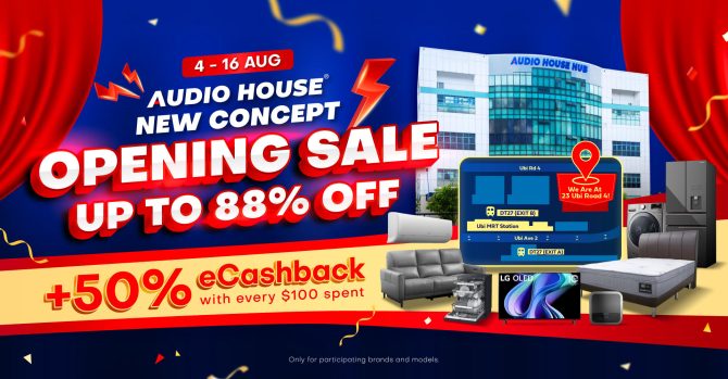 Shop all your household essentials at Audio House’s new store concept and grab exclusive deals available for a limited period only from now to 16 August 2023! Enjoy discounts of up to 88% Off on your favourite brands including Ariston, Cuckoo, Dyson, Samsung, LG, Philips, Europace, King Koil, JBL, Ruhens, Sharp, Yamaha and many more! You can also enjoy 50% eCashback with every S$100 spent at the sale!