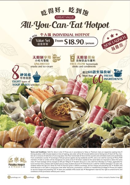 The All-You-Cat-Eat Hotpot is only available at Paradise Hotpot @ Compass One for all day long.