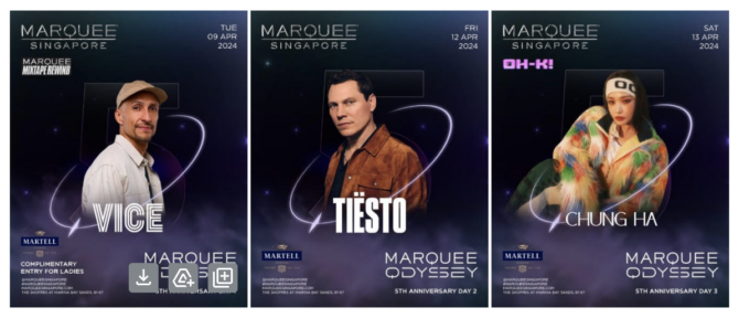 Singapore’s iconic nightclub, MARQUEE, is celebrating its 5th birthday in style! Get ready for an epic “MARQUEE Odyssey” from 9 to 13 April 2024. Dance the night away to legendary DJ Tiësto’s electrifying set and South Korean pop star Chung Ha’s unforgettable performance.