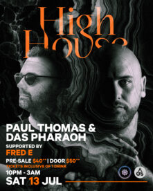 Gear up for a night of progressive house beats at HighHouse on 13 July 2024. This exclusive event features guest DJs Paul Thomas and Das Pharaoh and promises a dance floor journey from 10 pm until late.