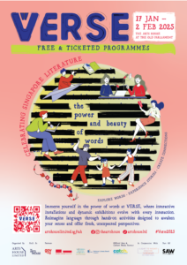 VERSE is a year-long literary arts program at The Arts House at the Old Parliament (TAH) that celebrates the diversity of Singapore literature. It features a variety of events and activities, such as interactive installations, exhibitions, workshops, and performances, designed to engage visitors of all ages and backgrounds.