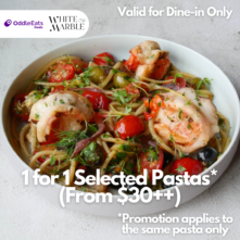 Craving pasta? Head over to White Marble for a delicious deal! They’re treating you to a buy-one-get-one-free deal on their pasta dishes (starting from S$30++), allowing you to savor two out of their three tempting flavors for the price of one. Choose from the sumptuous Iberico Pork Jowl Ragout & Orecchiette Pasta, the aromatic Bucatini Puttanesca & Prawn, or the ocean-inspired Linguine Vongole. It’s the perfect excuse to gather a friend and relish in a satisfying and budget-friendly Italian feast.