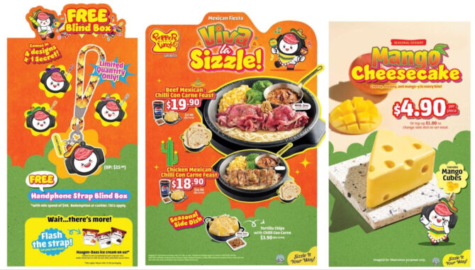 Spend a minimum of S$40 and receive a complimentary Peppie Handphone Strap Blind Box (U.P. S$15.90), featuring four collectible designs and one secret edition. Bring the strap along on your next visit to redeem a free Häagen-Dazs ice cream with any main course purchase.