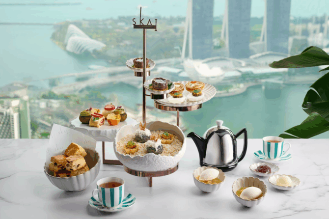 If you prefer a touch of altitude with your afternoon tea, SKAI’s Japanese-inspired high tea on Level 70 pairs sweeping skyline views with precision-driven flavours. Located within Swissôtel The Stamford, the experience runs daily until 12 March, with seatings from 12 pm to 2 pm and 3 pm to 5.30 pm.
