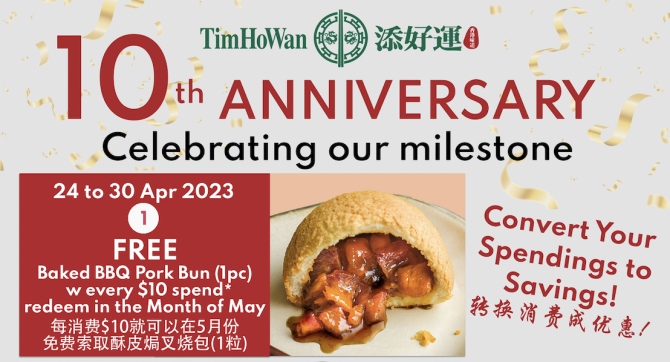 It is Tim Ho Wan’s 10th birthday! Eat to your heart’s content and get rewarded for it by converting your spending into free Baked BBQ Pork Buns.