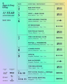 Singapore’s renowned Jigger & Pony Group is clinking glasses to 12 years of shaking up the cocktail scene this May. To celebrate, they’re hosting a two-week-long birthday bash across their award-winning bars, running from now to 15 May 2024.