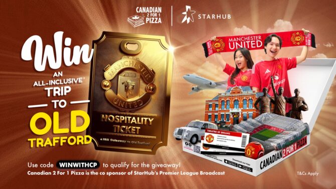 From 17 August 2024 to 31 January 2025, customers who make a purchase (any offerings not restricted to pizza only) on the Canadian 2 For 1 Pizza website or app and use the code “WINWITHCP” at checkout will be entered into the giveaway. The first prize winner will win a Pair of Hospitality Tickets to the Manchester United vs. Arsenal match on 8 March 2025, including flight vouchers worth S$3,000 per person and hotel accommodation. The second prize will win a pair of Hospitality Tickets to the Manchester United vs. Arsenal match on 8 March 2025.