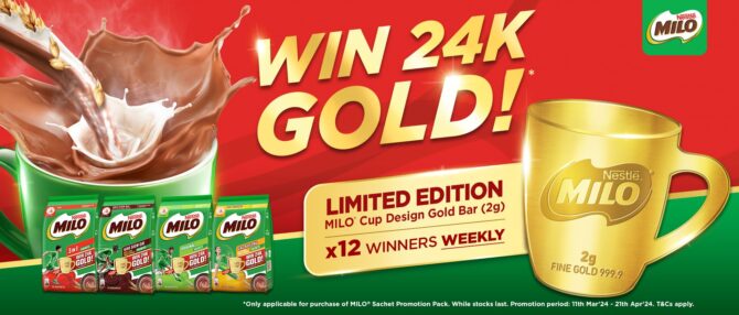 This exciting promotion is part of MILO®’s “Go For Your Winning Cup” campaign, encouraging Singaporeans to start their day with a nutritious and energizing cup of MILO®. To participate and get a shot at winning a piece of golden goodness, simply purchase any promotional MILO® Sachet pack. These packs come in your favorite flavors – 3in1, Gao Siew Dai, Gao Kosong, and Original.