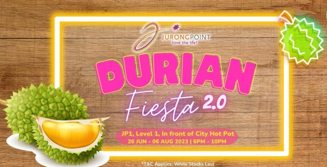 Jurong Point is bringing back its Durian Fiesta from now to 6 August 2023, 6pm to 10pm. Durian Fiesta 2.0 will once again showcase the beloved D24 and Premium Mao Shan Wang durians from Pahang. Privileged members will enjoy 10% off their total bills as part of an exclusive deal.