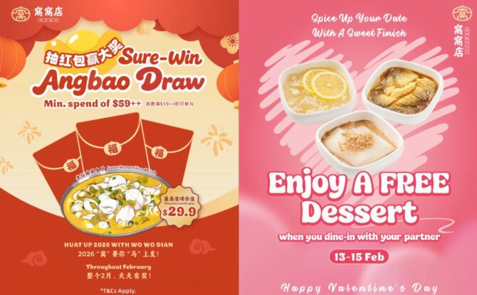 Visit Wo Wo Dian for a Sure-Win Angbao Draw and a free dessert for couples. Wo Wo Dian (窝窝店), the heritage steamed bun specialist with a 137-year legacy, is doing festive season dining the fun way: spend S$59++ or more and you get a Sure-Win Angbao Draw from now until 28 Feb 2026.