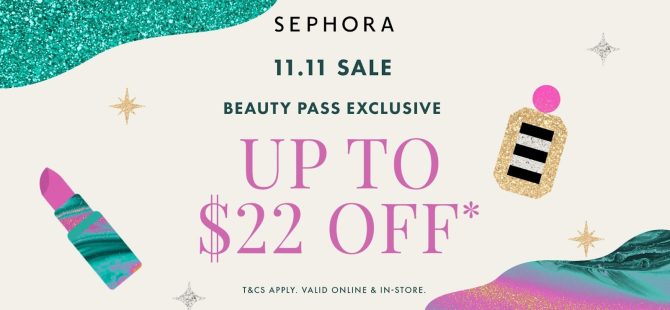 From 9 to 13 Nov 2023, Sephora’s Beauty Pass members can enjoy S$11 off with S$100 minimum spend and S$22 off with S$150 minimum spend.