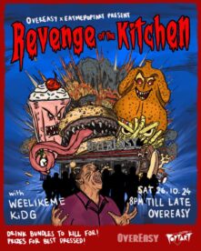 Get ready to dance the night away at REVENGE OF THE KITCHEN with Eatmepoptart’s DJs, weelikeme and KiDG, keeping you energized with a mix of pop and rock hits. Don’t forget to dress in your killer outfit for this occasion. Simply because the best-dressed individual will stand a chance to win a pair of flight tickets worth S$800, whereas the best-dressed group will win S$500 in OverEasy dining credits.
