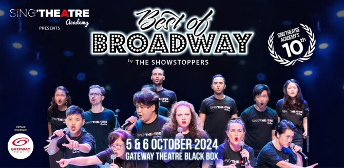 Join Sing’theatre Academy for a spectacular celebration of their 10th anniversary starring The Showstoppers. Directed by TJ Taylor, Best of Broadway showcases a dazzling array of musical numbers from classic to contemporary. From Rent’s heartfelt ballads to Grease’s high-energy numbers, this production offers a nostalgic journey through musical theatre. Featuring 42 talented performers, this production promises to be a dazzling spectacle.