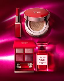 TOM FORD BEAUTY presents two new collections: Electric Cherry and Cherry Smoke which feature two brand-new fragrances (S$335.00/30ml, $575.00/50ml) that are contained in the iconic Private Blend bottle, along with two Limited Edition Eye Colour Quads (S$152), Ultra-shine Lip Color (S$90.00) and Refillable Cushion Compact ($60.00).