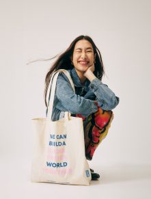 The collection includes caps, T-shirts, tote bags, stationery, and a denim jacket online and in select stores globally. The ‘Kinder, Braver, Together’ product design was inspired by the Born This Way Foundation’s mission of supporting youth mental health and working with young people to build a kinder, braver world.