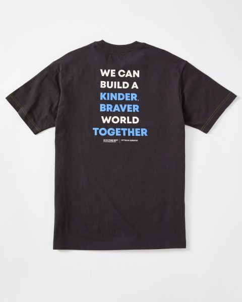 The collection includes caps, T-shirts, tote bags, stationery, and a denim jacket online and in select stores globally. The ‘Kinder, Braver, Together’ product design was inspired by the Born This Way Foundation’s mission of supporting youth mental health and working with young people to build a kinder, braver world.