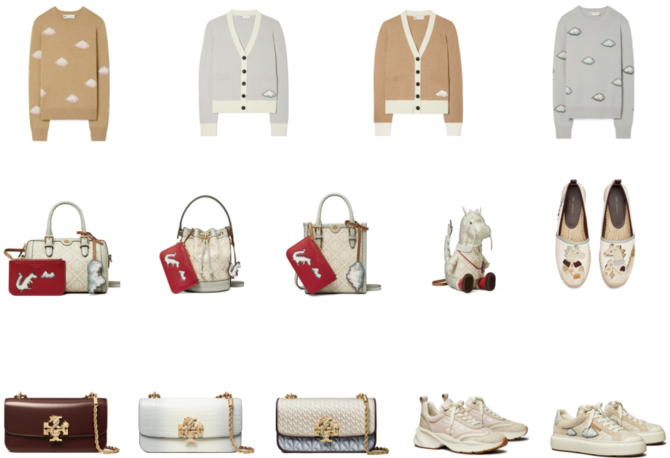 Tory Burch’s Year of the Dragon capsule collection symbolizes power, majesty, and good luck. The dragon flies in the clouds, adorning exclusive charms and details alongside the brand’s iconic silhouettes.
