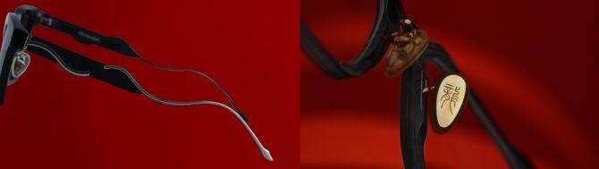 Each eyewear piece in this collection is designed to make a bold statement and attract attention, showcasing unexpected elements like dragon scales, dragon and phoenix patterns, traditional calligraphy motifs, copper coins, and dragon tails.