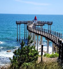 For late afternoon/ evening activities, we highly recommend visiting Pohang Space Walk atop the hills of Hwanho Park. You can get stunning views of the cityscape enveloped in sunset colors as you walk up the surreal roller-coaster-like structure. As the sky gradually darkens, the LED lights of the Space Walk emit a silvery glow against the night sky, while the moon and the stars quietly emerge.